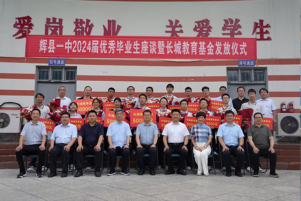 8月9日,輝縣市第一高級中學(xué)2024屆優(yōu)秀畢業(yè)生座談暨長城教育基金發(fā)放儀式在市第一高級中學(xué)隆重舉行。市委書記李繼游,市委副書記、市委辦公室主任畢捷,副市長程龍及教體局、市第一高級中學(xué)主要負(fù)責(zé)同志,長城集團(tuán)董事長王紀(jì)中和市第一高級中學(xué)2024屆優(yōu)秀畢業(yè)生代表參加儀式。