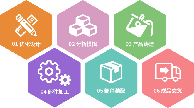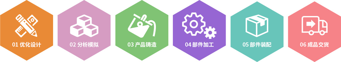 長城鑄鋼可為客戶提供裝備部件從優(yōu)化設(shè)計(jì)、分析模擬、產(chǎn)品鑄造、部件加工、部件裝配、到成品交貨的一條龍6項(xiàng)配套服務(wù)