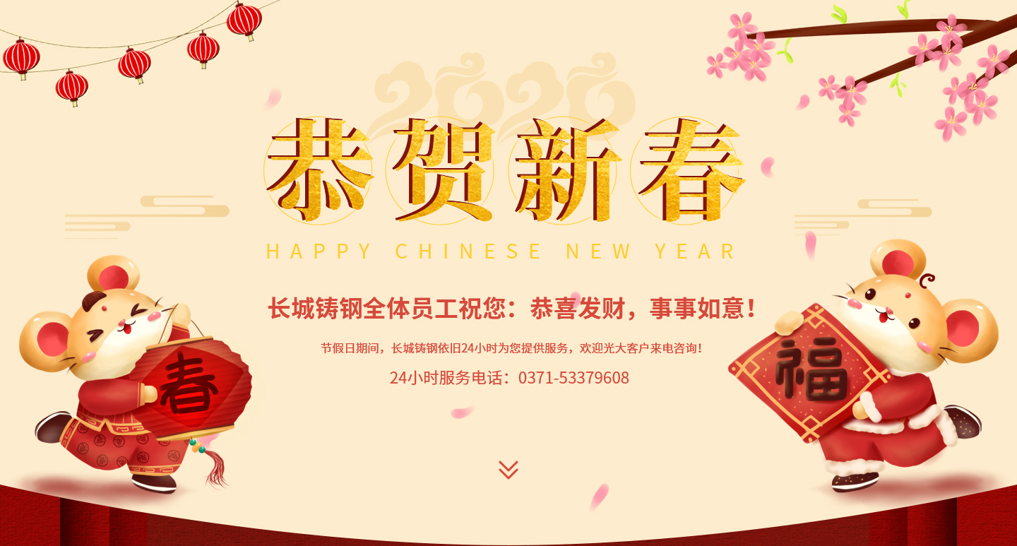 長城鑄鋼全體員工向支持與幫助公司發(fā)展的各級領(lǐng)導(dǎo),以及社會各界表示衷心的感謝!祝各位鼠年吉祥!大吉大利!闔家歡樂!